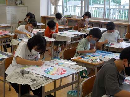誰も見たことのない「まぼろしの花」をテーマに作品づくりに取り組んでいます。色を重ねて塗ったり、花が目立つような構成にしたり、想像を広げながら、絵を描いています。完成が楽しみです。