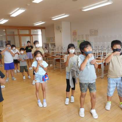 久しぶりの「なかよしタイム」です。縦割り班で、ハンカチ落とし、なんでもバスケット、だるまさんの一日などをして楽しみました。