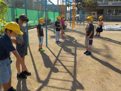 かげつなぎをしたり、太陽とかげの向きを観察したりしました。