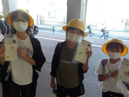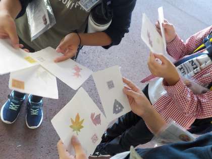 できあがった和紙に大満足の子供たち。素敵なはがきが出来上がりましたね。
