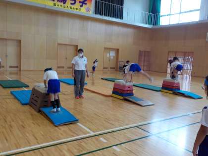 富山市体育協会のスポーツ指導員の方が来校され、跳び箱教室が開かれました。