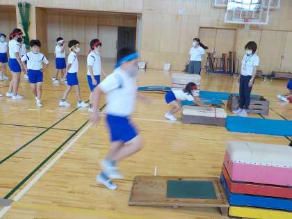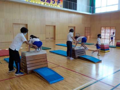 開脚跳びと閉脚跳びを丁寧に教えてくださいました。跳び箱が苦手な子供たちもみんな挑戦しました!