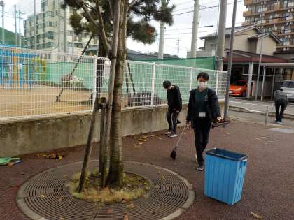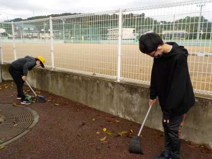 今朝は、環境美化委員と先生方が落ち葉掃きをしてくれました。