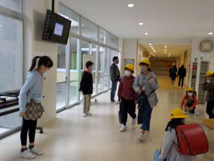 朝、児童玄関付近では、5・6年生が委員会の活動をしています。