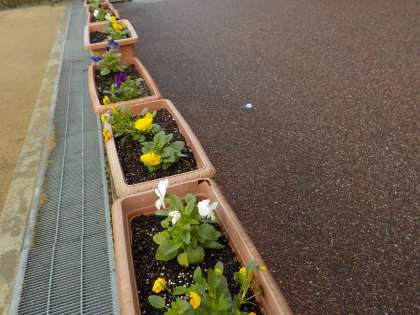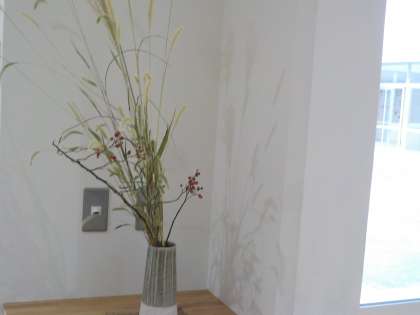 校内に飾られているお花(写真下2枚)は、図書館司書の先生が生けてくださっています。季節感があり、心が和みます。