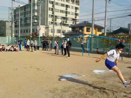 今日の大休憩の時間に、運動委員会による「走り幅跳び練習会」がありました。走り幅跳びが上手になりたい子供たちが集まり、跳び方のポイントを運動委員に教えてもらったり、記録をつけてもらったりして、技能の向上を目指しています。