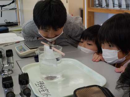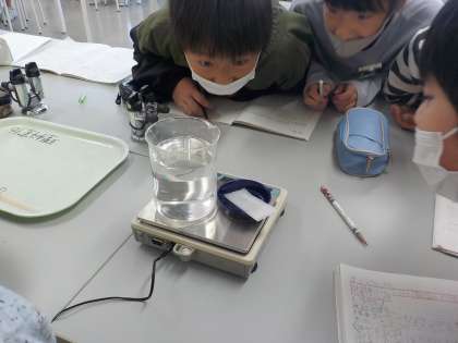 とける様子やとけた後の重さの変化を真剣に観察していました。