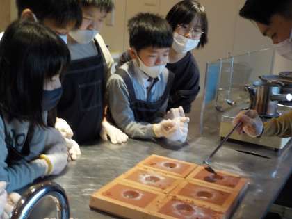 ペーパーウェイト作りの様子です。