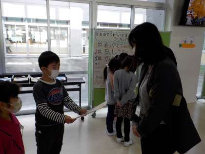 国語科の学習で、手紙の書き方を学んだ子供たちは、「招待状をかこう」とやる気まんまん。完成した招待状を直接わたしにいきました。一緒に遊べる日をとても楽しみにしています。