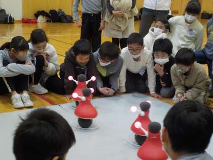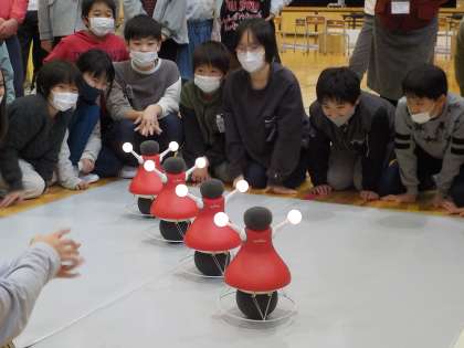 ロボットがチアリーディングをする姿に興味津々でした。