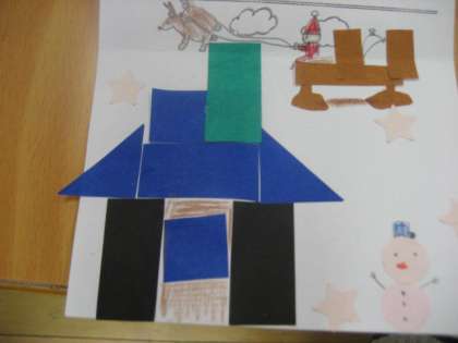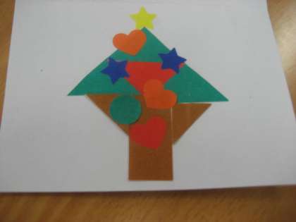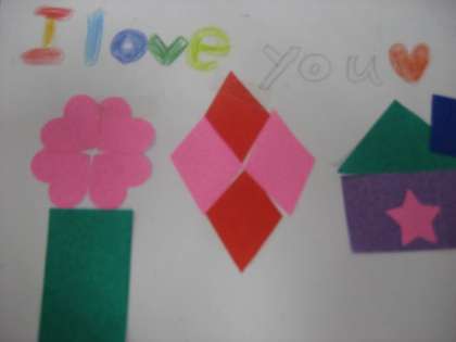 3年生の外国語活動では、"Yellow star,please."などの表現を使って、ほしい形を伝え合いました。いろいろな形を集めて、すてきなカードになりました。