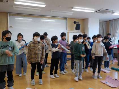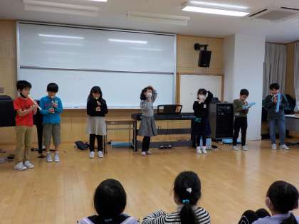 リコーダーや鍵盤ハーモニカ、ダンスなどを取り入れたアンサンブルの発表会がありました。