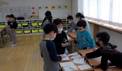 国語科で、ものの名前の学習をしました。魚、楽器等の「まとめてつけた名前」を店の名前にし、あじ、さば、ピアノ等の「一つ一つの名前」の商品を用意して、準備してきました。いよいよ今日は、お店やさんやお客さんになりきって遊びます。