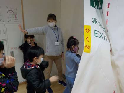 そのような場合でも、安全にドアを開けて避難できるように訓練しました。