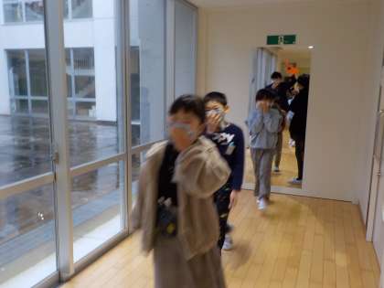 校内で火災発生時、防火シャッターや防火スクリーンが閉まる場合があります。