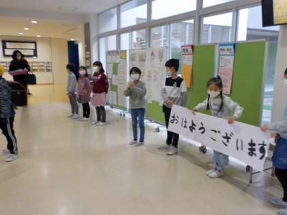 校内では、いろいろな学年の白鳥っ子が、進んであいさつ運動をしています。