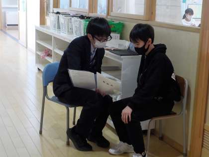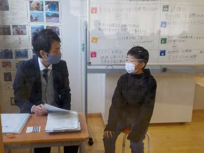 「あゆみ」を渡しながら、2学期の学習や生活について振り返りました。先生から1学期から伸びた面やこれまでの頑張りを褒められ、とても嬉しそうな様子でした。