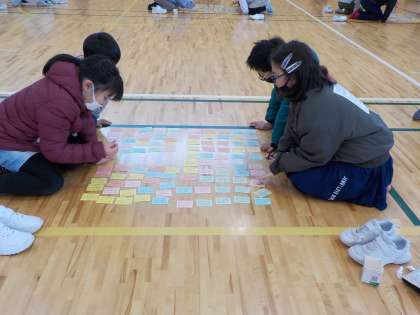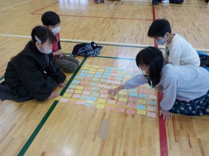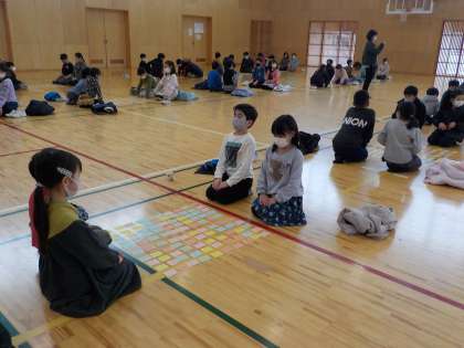3・4年生が体育館に集い、静かな熱戦を繰り広げました。