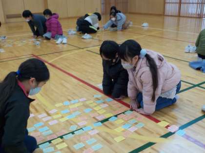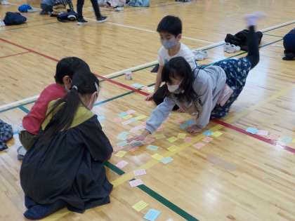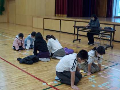 3・4年生が体育館に集い、静かな熱戦を繰り広げました。