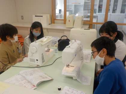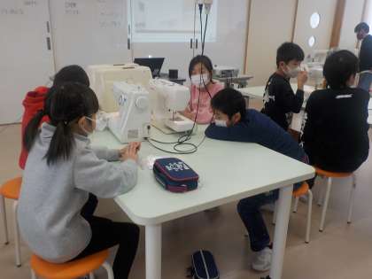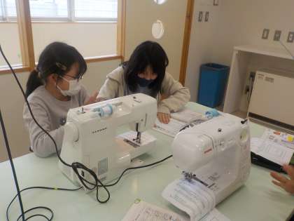 はずみ車を手前に回して針を刺し、布押さえを下ろして・・・。