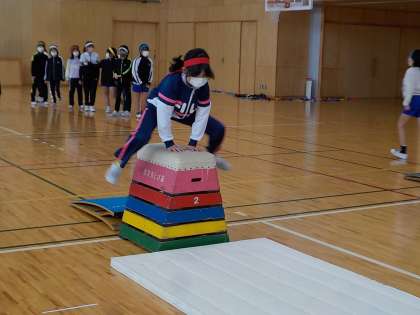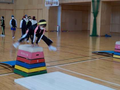 跳び箱に取り組んでいます。いろいろな技にも挑戦していきたいですね!