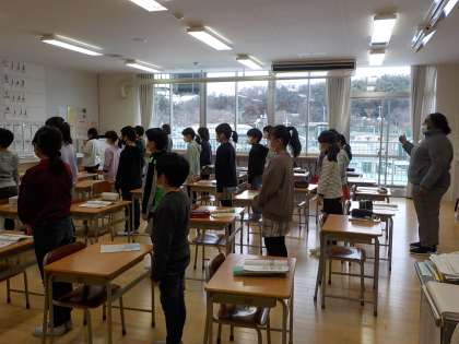 4年生の外国語活動では、"Go straight." "Turn left." "Turn right."方向の言い方を学習しました。ALTの先生の指示をよく聞いて、体の向きを変えるなど、活動を楽しみました。