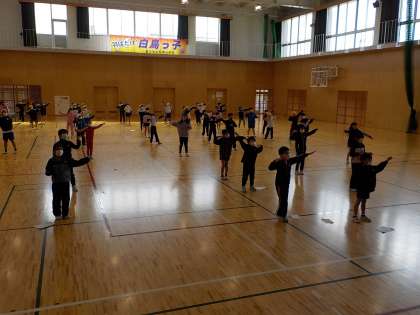 卒業を祝う集会の2年生の出し物は、ダンスです。音楽に合わせてノリノリで練習をしています。6年生に見てもらうのが楽しみです。