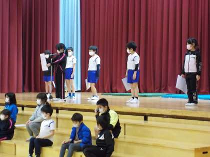 学習参観の発表を1年生に見てもらいました。子供たちは「1年生にかっこいいと思ってもらいたい」と張り切って発表に臨みました。練習してきたことを堂々と発表する姿がとても素敵でした。「緊張したけど、思い切ってやってみてできたからよかった」「1年生さんが一生懸命見て、感想を言ってくれたから嬉しかった」と振り返っていました。