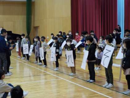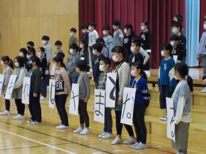 3年生の出し物です。中学校へ進学する6年生にメッセージを送りました。ばらばらの平仮名を並び替えると・・・・ことわざに!