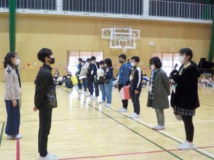児童会引き継ぎ式を行いました。5年生は、各委員会の委員長から児童会・委員会を受け継ぎました。