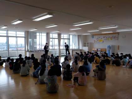 5年生は学年で集まりました。高学年として気持ちを新たに頑張ろう、と意欲を高めています。