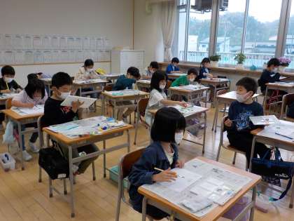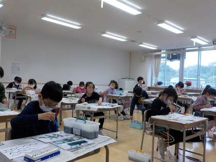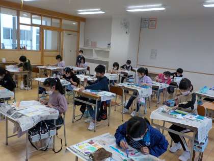 自分のお気に入りの色を作ったり、様々な線や点を描いたりして楽しみました。