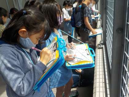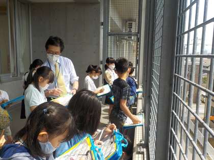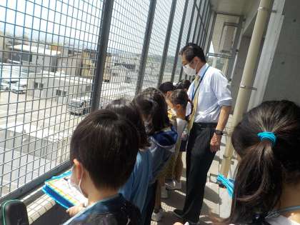 交流スペースのベランダや、集会室の窓から、学校のまわりを見渡してみました。