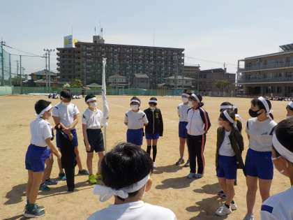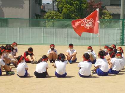 応援練習の後、リーダーたちが振り返りの話合いをしていました。