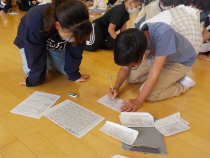 グループの友達と役割を確認し、縦割り清掃の準備を行いました。