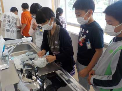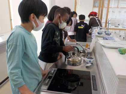 やかんでお湯を沸かし、急須でお茶をいれる学習です。