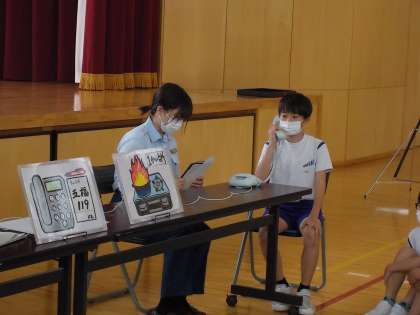 119番通報体験の様子です。