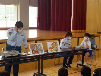 授与式の後には119番通報体験を行いました。