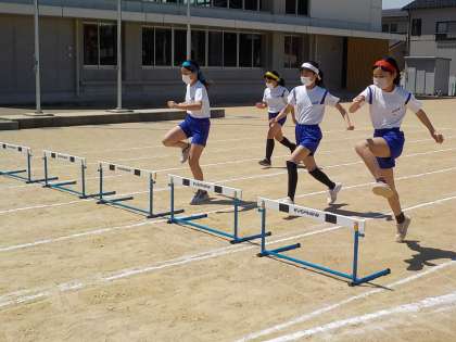 運動会に向けて、ハードル走の練習を行っています。初めてのことに不安な様子でしたが、自学ノートにハードルの跳び方のコツを調べたり、友達に聞いたりしながら、一生懸命取り組んでいます。