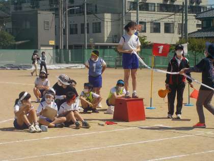 5・6年生が、出発、決勝、用具、誘導等、様々な係を分担して運動会の運営を行います。