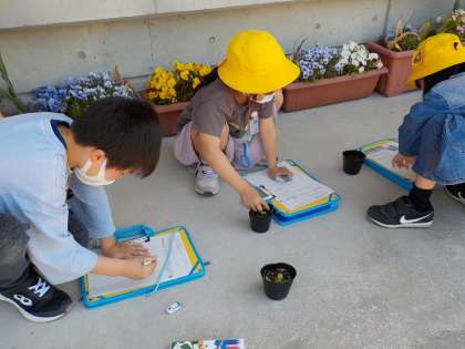 3年生「ホウセンカの芽の観察」:5月18日