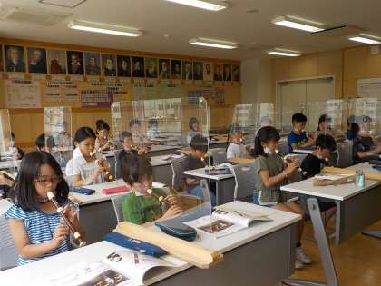 その後、自分たちも上手に演奏できるようになりたい!と意気込んで練習していました。始めたばかりですが、だんだんきれいな音が出せるようになってきました。