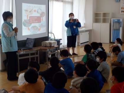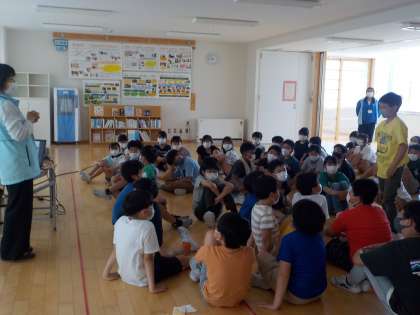 子供たちは、共食いや水の汚れを防ぐ方法等を真剣に聞いていました。