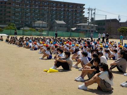 理科室出火を想定した避難訓練を行いました。子供たちは、「おはしも」を守り、すみやかに避難しました。五福小学校では、振り返りとして、6年生の防災リーダーが今日の訓練から次に生かしていきたいことを話します。子供たちは、真剣に話を聞いていました。