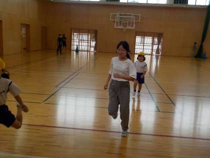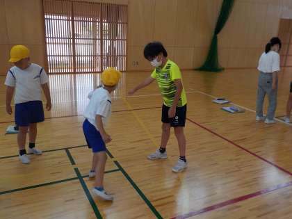 1年生のシャトルランの回数を数えてあげたり、反復横跳びを教えてあげたりしました。