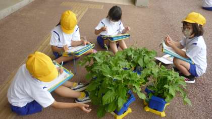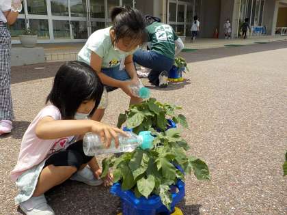 今日の生活科の学習では朝顔の観察をしました。「葉っぱの枚数が増えたよ」「大きくなったよ」と朝顔の生長を喜ぶ子供たちでした。
