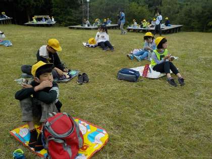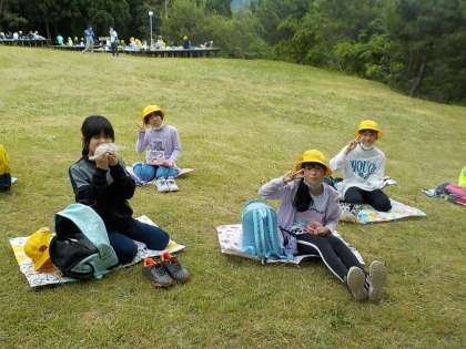 昼食は、天気にも恵まれ、広場で食べました。おいしいお弁当を食べて、満面の笑顔が見られました。