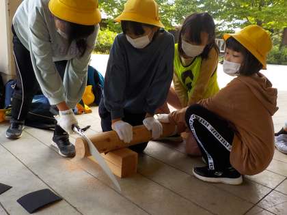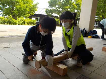 2日目は木でコースターを作りました。班のみんなで役割分担しながら、取り組むことができました。