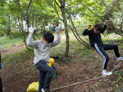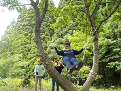 森の中で、ワイルドな遊びを満喫しました。