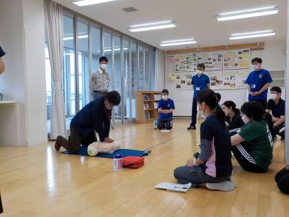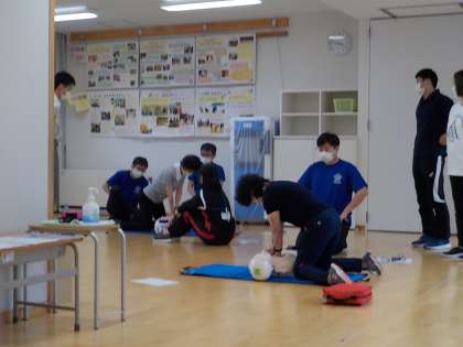 日頃の学校生活や夏の水泳学習における事故に備え、教職員が「救命講習会」を受けました。新型コロナウィルス感染症に対応した心肺蘇生法と、AEDの使い方を教わりました。毎年講習を受けることで、事故が起こった場合の知識や技術を身に付けるとともに、あってはならない万が一の事故を少しでも未然に防ごうという気持ちを、教職員みんなで高めることができました。